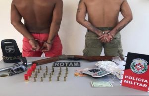 PM prende acusados de tráfico de drogas e apreende duas armas...