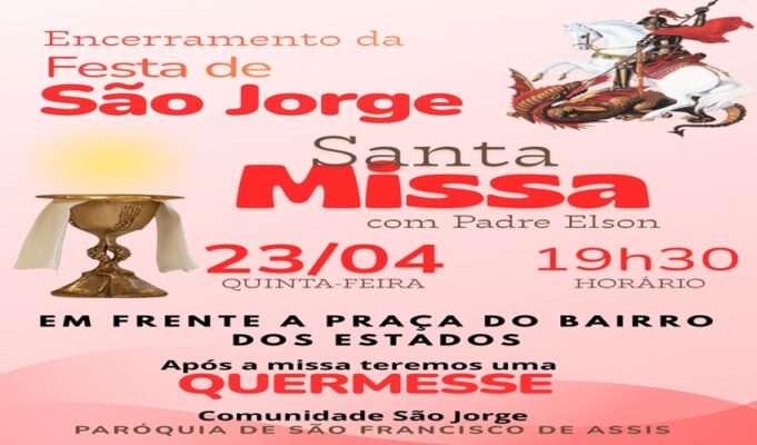 Encerramento da Festa de São Jorge, padroeiro do Bairro dos Estados, em Patos, acontece nesta quinta-feira