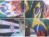 Homem vende bandeiras de times e seleções durante a Copa do...