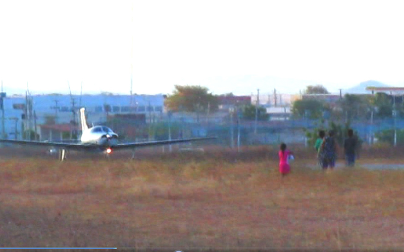 Pessoas se aproximam de avião em movimento no aeroporto de Sousa...