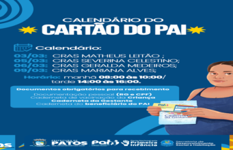 Prefeitura de Patos divulga calendário de entregas do Cartão do PAI