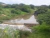 Barragem da Dinamarca, construída no Rio Espinharas, amanhece transbordando, em Serra...