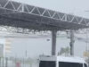 Teto de posto de combustíveis ameaça cair durante chuva com ventos...