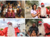 Vestido de Papai Noel, jornalista Damião Lucena distribui presentes para a...