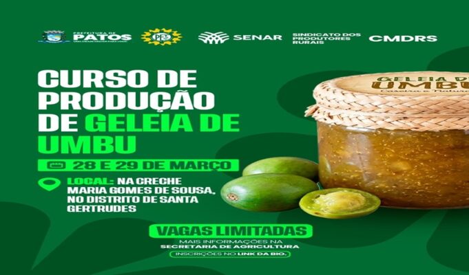Curso de produção de geleia de umbu será promovido para agricultores de Patos