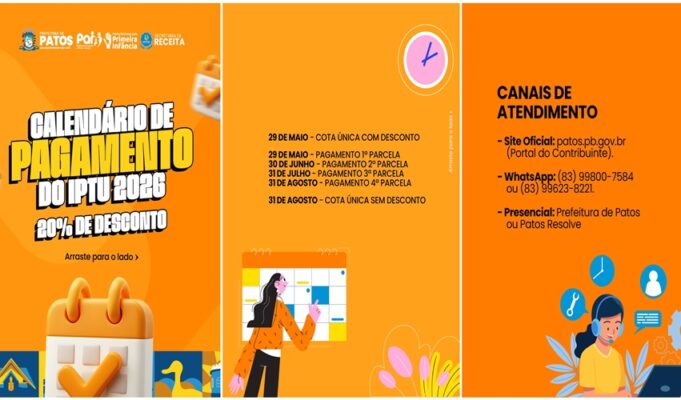 IPTU 2026: Secretaria da Receita de Patos destaca prazos e opções de pagamento