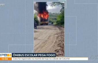 Ônibus escolar pega fogo durante transporte de estudantes em Caturité