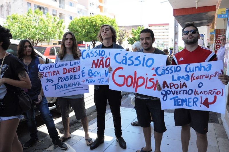 Manifestantes fazem senador Cássio Cunha Lima desistir de entrevista coletiva em...